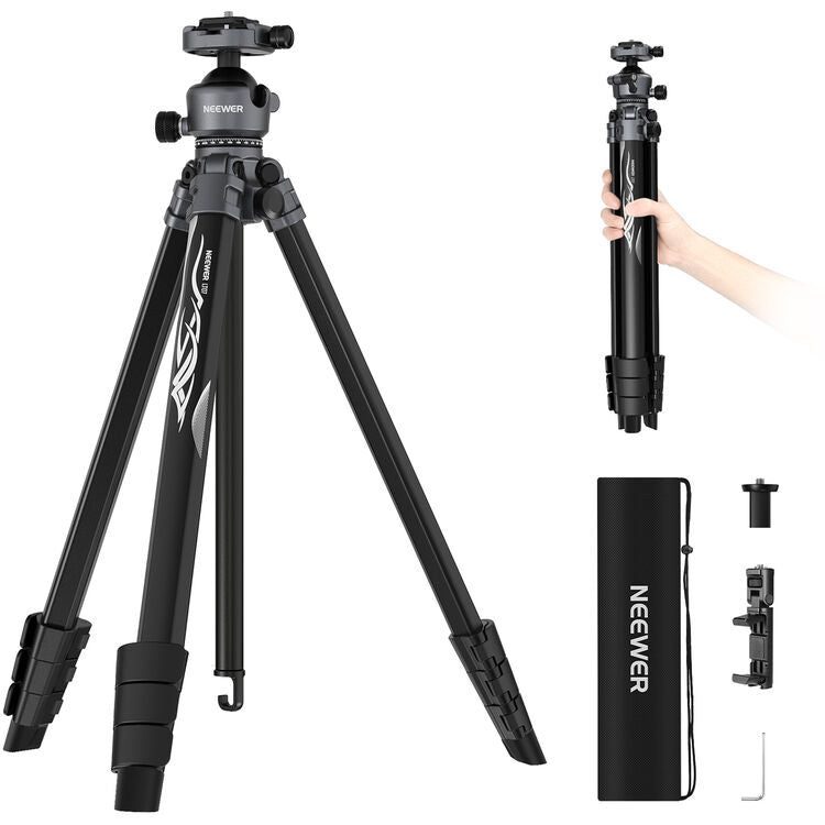 Neewer LT07, yığcamlıq və sabitliyi bir arada axtaran fotoqraflar və videoqraflar üçün hazırlanmış yüksək keyfiyyətli alüminium tripoddur. Davamlı alüminium ərintisindən hazırlanan bu tripod maksimum 155 sm hündürlüyə çatır və qatlandıqda asanlıqla daşınması üçün çox kiçik ölçüyə sahib olur. Üst hissəsindəki 360 dərəcə panoramik başlığı sayəsində mənzərə çəkilişləri və ya axıcı kinematik kadrlar üçün dəqiq tənzimləmələr etmək mümkündür. Tripodun ən maraqlı özəlliyi onun 2-si 1-də dizaynıdır; ayaqlardan biri ayrılaraq 162 sm hündürlüyündə monopoda çevrilə bilir. Maksimum 8 kq yük götürmə qabiliyyəti ilə həm DSLR, həm də ağır linzalı güzgüsüz kameralar üçün tam uyğundur. Sürətli kilid sistemi sayəsində istənilən ərazidə saniyələr içində quraşdırıla bilir və mərkəzi sütun tərsinə çevrilərək makro çəkilişlər üçün imkan yaradır. Yüngül çəkisi və möhkəm quruluşu ilə səyahət və məkan çəkilişi üçün əvəzolunmaz foto avadanlıq hesab olunur. Yan tərəfdəki "cold shoe" girişi isə mikrofon və ya kiçik işıq aksesuarlarını birbaşa tripodun üzərinə bərkitməyə kömək edir.
