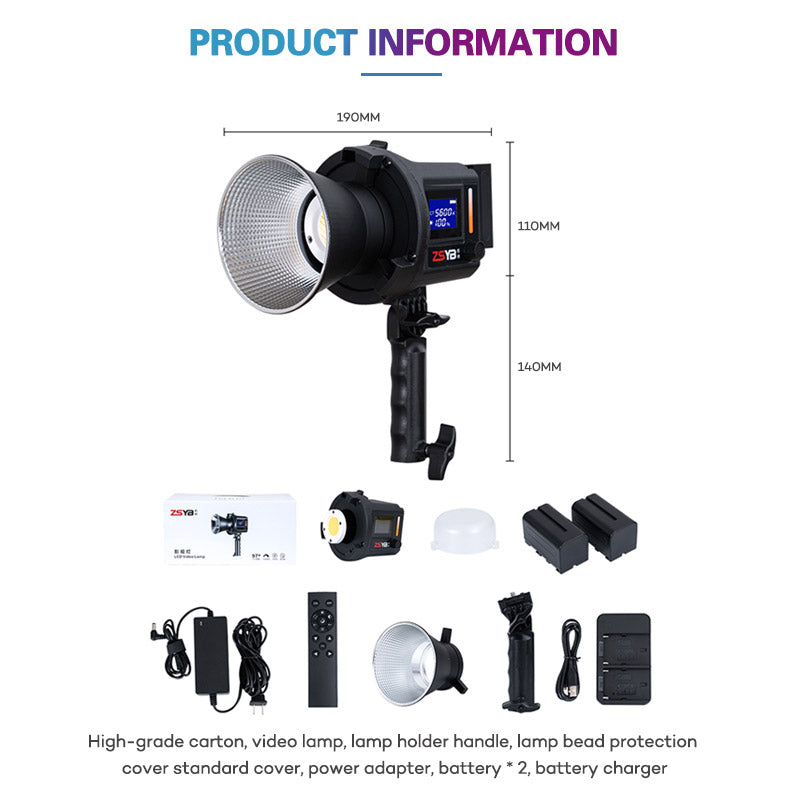Видеосвет ZSYB CL80 Bi-Color COB LED — это профессиональное и компактное решение для освещения, предназначенное для видеосъемки и фотографии. Он оснащен источником света 80W COB LED, обеспечивающим мощное и непрерывное освещение, подходящее для различных сценариев съемки, включая студийную работу и выездное видеопроизводство.