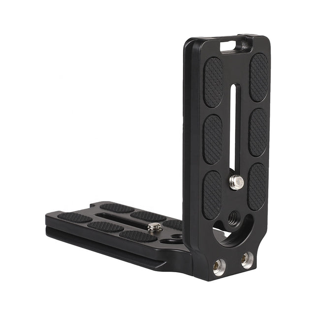 L-образная быстросъемная пластина, широко известная как L-Bracket, представляет собой высококачественный аксессуар для фототехники, разработанный для максимизации эффективности и стабильности для камер, установленных на штативе. Изготовленный из прочного, легкого алюминиевого сплава, этот кронштейн сохраняет свою структурную целостность, добавляя минимальный вес к настройке камеры. Его определяющая особенность — это способность мгновенно переключать ориентацию камеры с горизонтальной (пейзажной) на вертикальную (портретную) без необходимости изменения положения штативной головки или нарушения стабильности центральной оси.
