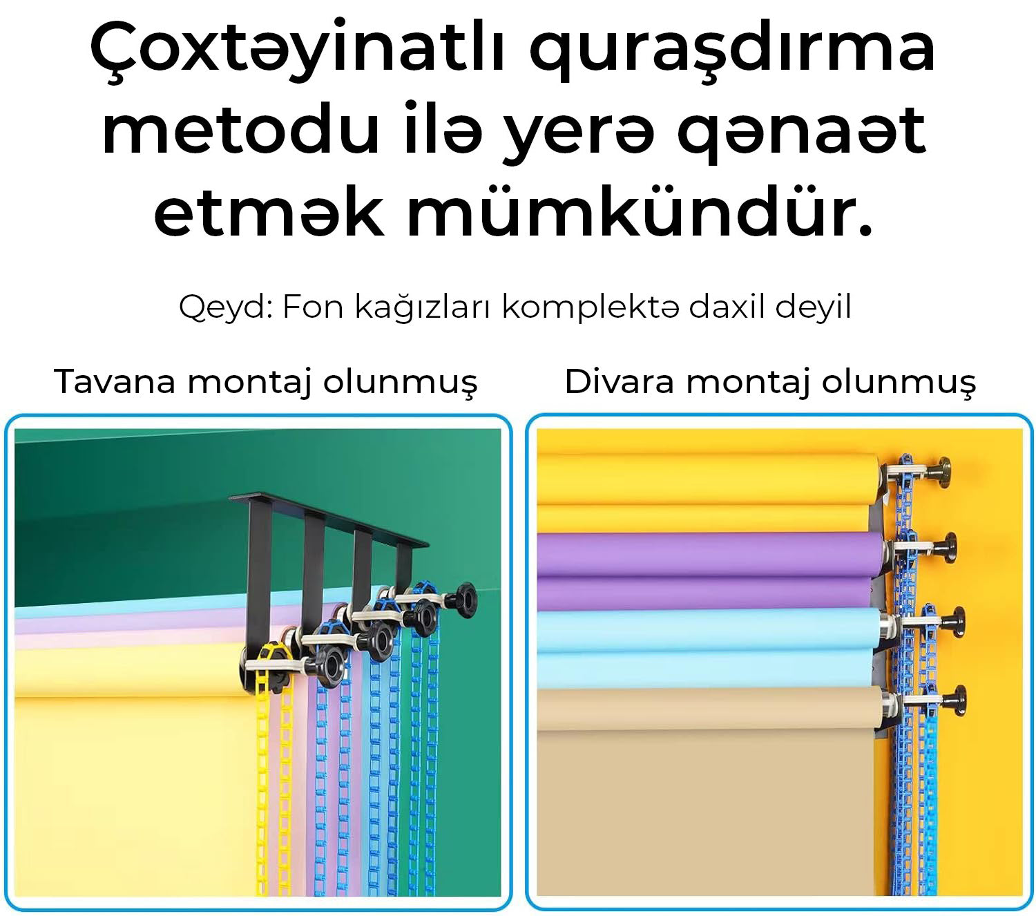 Selens 4W — это ручная студийная система для роликовых фонов с емкостью 4 шт. фонов. Может быть установлена на стене или потолке. Если вам также нужны фоновые бумаги, перейдите по этой ссылке, чтобы заказать фоновую бумагу.